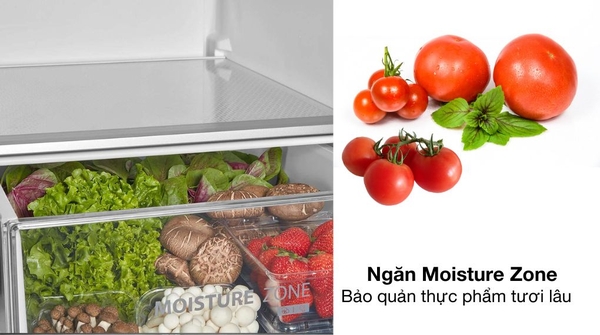 - Ngăn Moisture Zone duy trì độ ẩm lý tưởng, giữ rau củ tươi lâu và hạn chế mất nước.![]()
