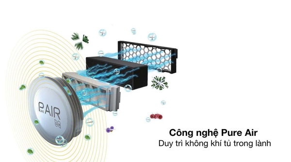 - Công nghệ Pure Air tạo ra các Plasma ion cực mạnh, tiêu diệt vi khuẩn và loại bỏ mùi hôi khó chịu, giúp môi trường trong tủ luôn trong lành, an toàn cho thực phẩm.![]()