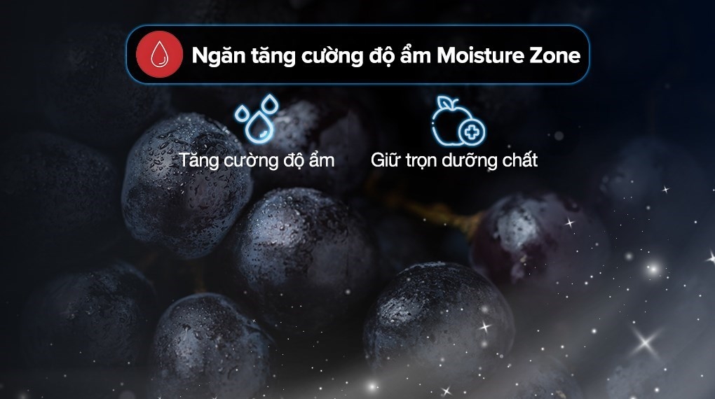- Ngăn giữ ẩm Moisture Zone: trang bị tấm chắn đặc biệt giữ độ ẩm ở mức 86% cho thực phẩm tươi tắn, giữ trọn nguồn dưỡng chất trong suốt thời gian bảo quản. ![]()