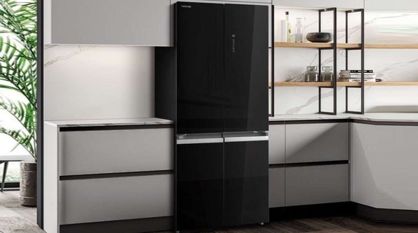 - Toshiba GR-RF677WI-PGV(22)-XK thuộc dòng tủ lạnh Multi Door có 4 cánh, thiết kế cửa kính đen cường lực sang trọng, tạo điểm nhấn cho không gian bếp gia đình thêm đẳng cấp, thời thượng.