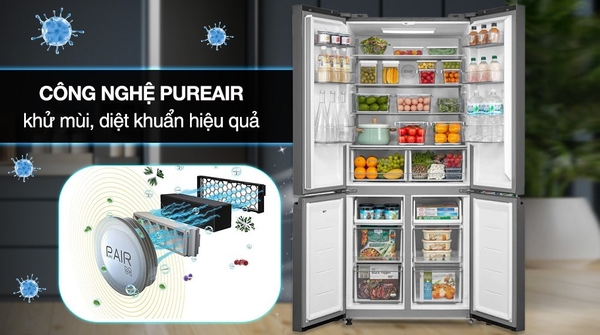 Tích hợp công nghệ PureAir tạo ra plasma ion siêu mạnh tìm kiếm và tiêu diệt vi khuẩn với hiệu quả 99.99%, khử mùi hôi khó chịu 99% toàn diện trong cả ngăn lạnh và ngăn đá, đảm bảo thực phẩm tươi lâu hơn, bảo vệ sức khỏe của gia đình tốt hơn. ![]()