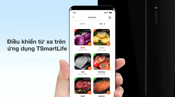 - Điều khiển từ xa trên ứng dụng TSmartLife: kết nối tủ lạnh với thiết bị di động với TSmartLife cho người dùng chọn các chế độ, nhiệt độ, xem phân tích lượng điện sử dụng trong tuần - tháng - năm để lường trước được chi phí tiền điện của thiết bị. Nhận các nhắc nhở thông minh, cảnh báo mở cửa, quản lý thực phẩm,...