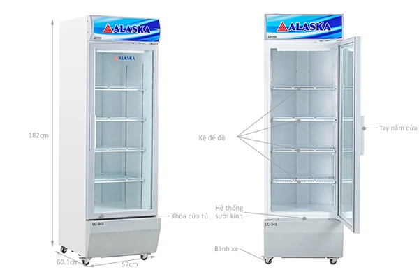 Tủ mát Alaska LC-345 là dạng tủ mát trưng bày có dung tích tổng 400 lít, sử dụng 342 lít có thiết kế 1 cửa mở ngang, kính 2 lớp hút chân không công nghệ Low-e giúp giữ nhiệt tốt, có sấy kính. Hộp đèn được trang bị phía trên và dàn đèn bên trong thân tủ tạo cảm giác tươi mát cho sản phẩm. Cùng Siêu thị điện máy Văn Chiến khám phá ngay những điểm nổi bật của chiếc tủ mát này nhé!![]()
