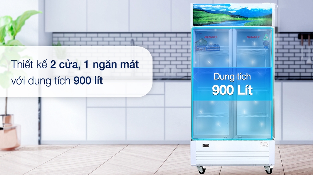 - Tủ mát sở hữu dung tích tương đối lớn lên đến 900 lít, phục vụ tốt cho nhu cầu lưu trữ, trưng bày tại các nhà hàng, quán ăn.