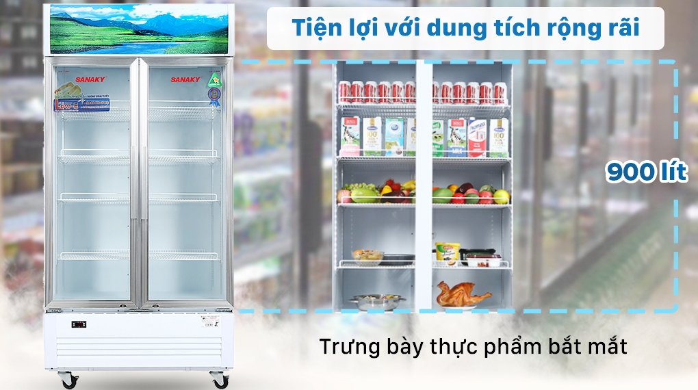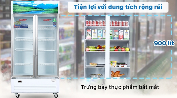 Trưng bày sản phẩm bắt mắt, tiện lợi với dung tích 900 lít rộng rãi