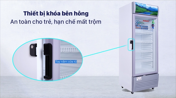 Tủ mát Sanaky Inverter được trang bị ổ khóa cửa bên hông tủ, hạn chế tình huống mất trộm hay trẻ em mở cửa tủ thường xuyên.![]()